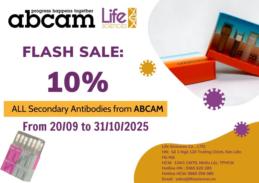 Lifesciences xin trân trọng thông báo chương trình ưu đãi đặc biệt: giảm giá 10% cho toàn bộ danh mục secondary antibody của hãng Abcam.